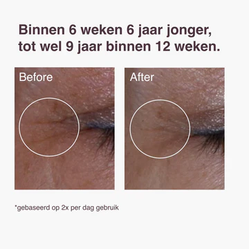 - Na 6 weken: huid oogt gemiddeld 6 jaar jonger*